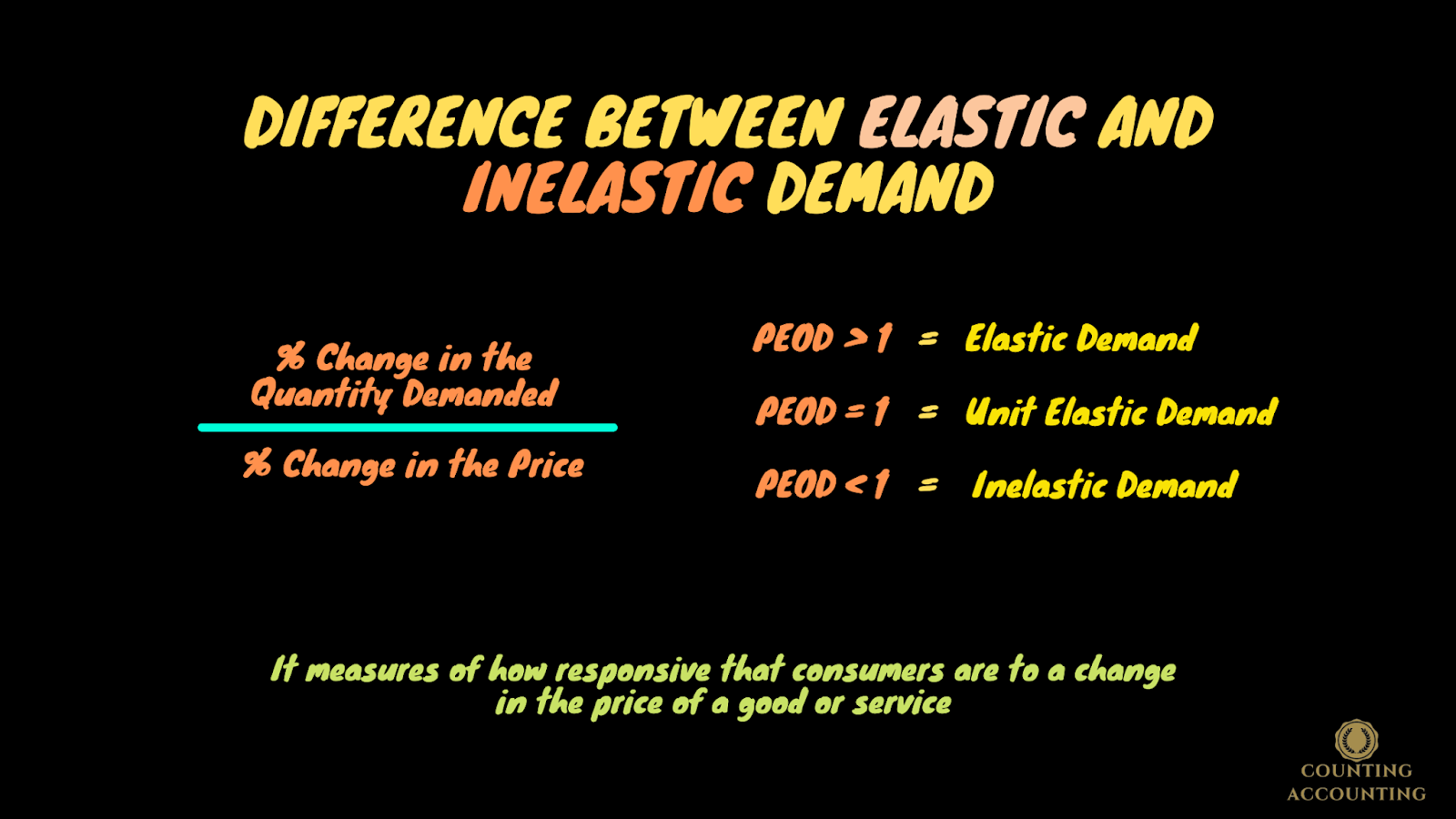 In this article, we're going to discuss the difference between elastic and inelastic demand. When we talk about inelastic and elastic demand what we're really talking about is the price elasticity of demand and I just want to give you a quick review. So price elasticity demand is a measure of how responsive that consumers are to a change in the price of a good or service and we calculate it with this formula.